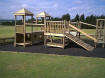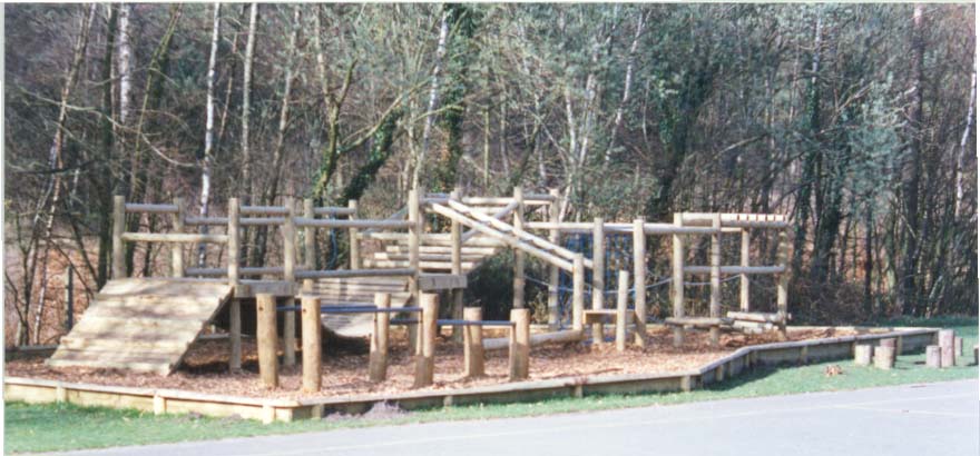 We vary our designs according to the anticipated use. Budget, maintenance costs, supervision regime, numbers of children and site aesthetics and customer preferences are all considered. All of the designs comply with the EN 1176/7 safety guidelines. Layouts for Primary Schools are invariably different from those used on village greens because of what we have leaned and Local Education Authority Guidelines that are usually in addition to EN 1176/7. As part of the equipment manual for each playground we supply a risk assessment to help with drawing up the rules of use. In our view, monitoring the dynamic use if the equipment is an important part of the overall safety. Overcrowding and the children finding novel ways of using layouts can make equipment that complies with safety guidelines subject to more minor accidents than are desirable. The sample project pictures below give a taste of the variety of schemes that we have completed. We do not normally charge for site visits or the production of basic plans suitable for developing concepts. Thatcham Discovery Centre. This playground was designed for 8-12 year olds and was completed in January 2000. The Discovery Centre is an environment education centre based at a West Berkshire Country Park (the Thatcham Reed Beds Nature Reserve). It is open to the public free of charge every day. It is a large play area with some low level 'trim trail' items leading to medium level 'multiplay' units and a large observation and climbing tower. There is disabled access to the play area with rubber and decking roads across some of the predominantly bark safety surface. Various Primary School Agility Layouts. Roofs are normally left out of school layouts especially when they will be used by KS2 children. It avoids the children being able to climb higher than is allowed by LEA guidelines reducing the supervision requirement. Whether the equipment is low or medium level an integrated layout provides more variety of play than 'trim trail' lines. The basic agility tasks can developed with a range of materials. An African Charity Project was built with local materials to our design for a school and hospital community in West Uganda. Although many people in the village thought the children were too busy with work tasks to play, it turned out to be very successful. Our experience, in general, suggests that well designed play equipment has wide appeal across differing abilities. Less able children do not normally need separate equipment but may have differing supervision requirements, and normally should play in smaller groups. We have made these observations whilst doing safety audits for children with a range problems for example: children normally in wheelchairs, those using walking frames, with balance and grip issues and autistic children. Warnford Village Play Area. This is an example of a design that has been popular in rural villages. The tunnel and tower element increases the role play elements compared to the open school layouts. This style of layout has been adapted for use in many other village play areas as shown. It has also been specified in schools for children up to KS1. In larger primary schools both the open layouts and the 'Warnford' style layout have been used for their respective halves of the school. We fit in village playgrounds items normally left out of schools for safety or logistic reasons for example: swings, slides, tumble bars and springers. Welford & Wickham Primary School. This an example of a bespoke project. Agility equipment themed on a boat Owing to a lack of space, the 'boat' was built into a rising bank with the main climbing equipment placed on top of the bank. The side of the boat provides a bark wall and safety railing which increases in height as the fall height increases. The front of the boat continues beyond the end of the bank to give a 'cabin' area for games. It was developed from a concept drawing by the head teacher. This is a small school so the reduction in capacity and supervision issues arising from the 'themed' design are less of a problem that they would be in a larger school. Play Trains, Boats and similar do not normally have enough agility elements to be considered under this heading but do make good 'themed' seats and are useful for role play for smaller children. They can be included in village playgrounds to help keep the toddlers away from equipment intended for older children. |